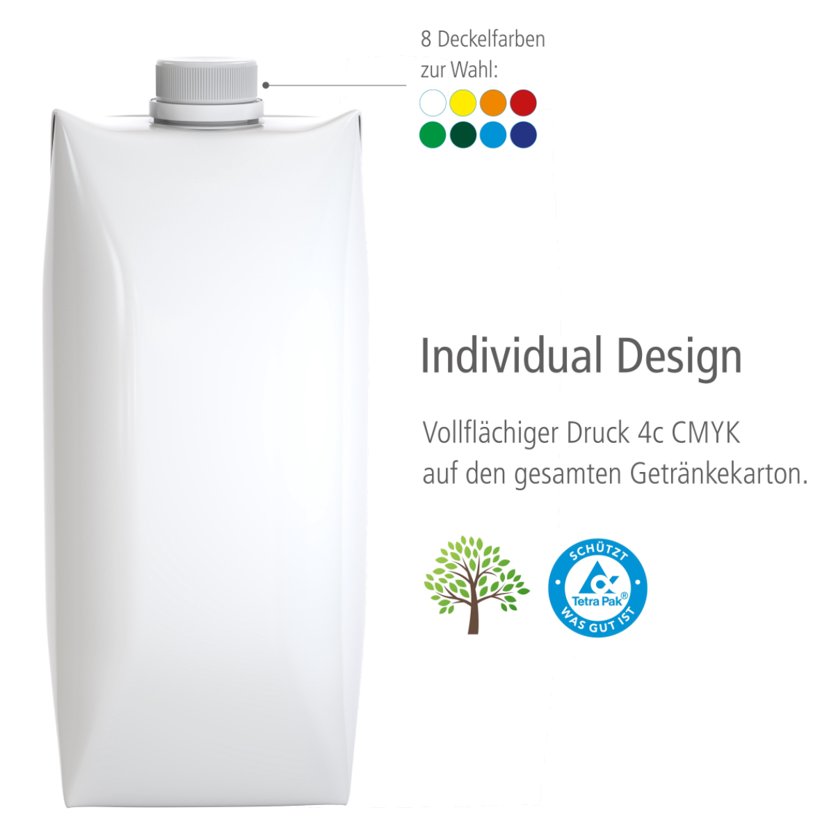 inkl. 4-fb. Druck (4c lt. Euroskala) auf dem Tetra Pak-Karton lt. Vorgaben